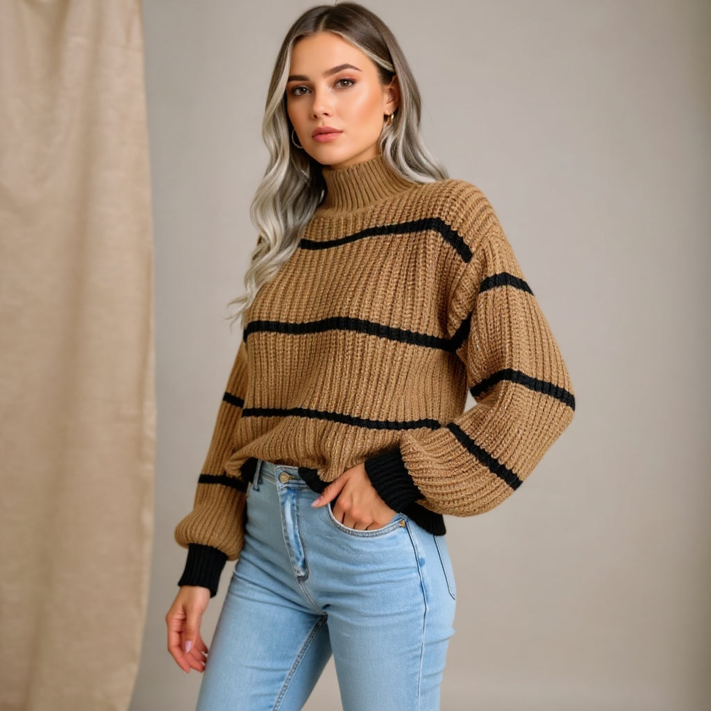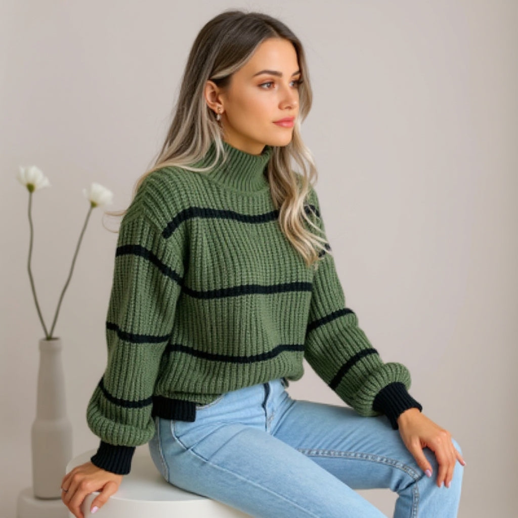 Loreta™ - megztinis aukštu kaklu ir juostelėmis